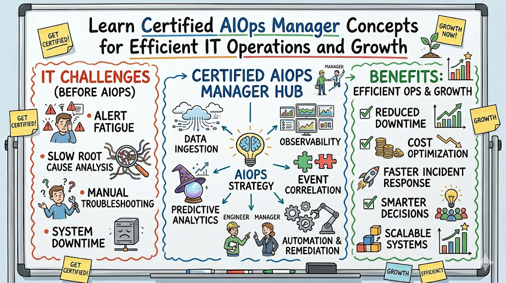 The Certified AIOps Manager program is a strategic credential designed for professionals who want to bridge the gap between traditional operations and AI-driven automation. This guide is crafted for engineers and leaders who recognize that manual intervention is no longer sustainable in complex, distributed cloud environments. By exploring this certification, you are choosing a path that prioritizes proactive system health and intelligent incident response over reactive firefighting.