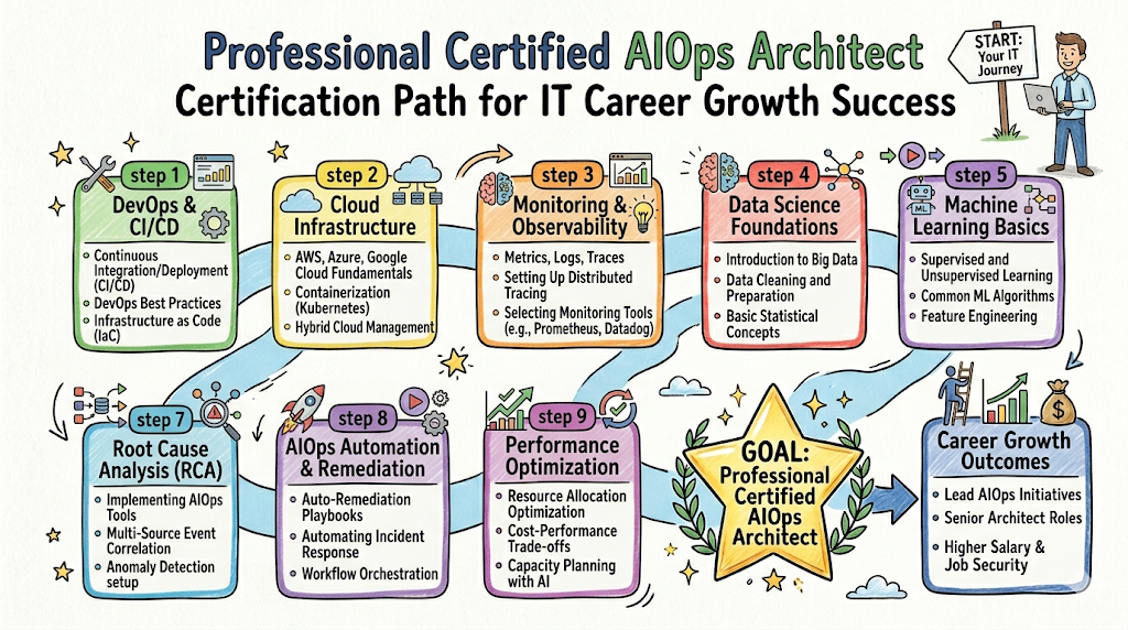 The shift toward algorithmic IT operations is no longer a luxury but a necessity for modern enterprise environments. The Certified AIOps Architect program is a comprehensive curriculum designed to bridge the gap between traditional site reliability engineering and artificial intelligence. This guide is built for professionals who want to move beyond manual monitoring into the realm of predictive, self-healing systems. It positions individuals at the forefront of cloud-native evolution by teaching them how to apply machine learning to telemetry data. By following this guide, engineers and managers can navigate the complexities of AIOps without getting lost in the hype. We provide a clear roadmap for career decisions, ensuring that you invest your time in skills that translate to production-grade stability. Whether you are managing a massive microservices architecture or scaling a platform team, understanding AIOps is the next logical step in your professional journey. You can learn more about this specialization at Aioopsschool which hosts the official Certified AIOps Architect program for global professionals.